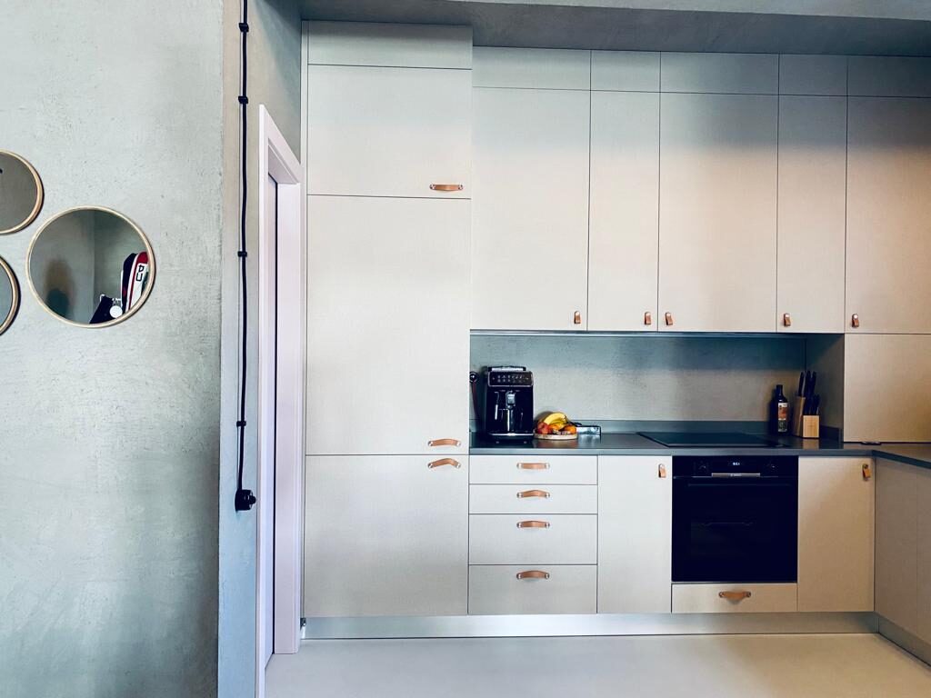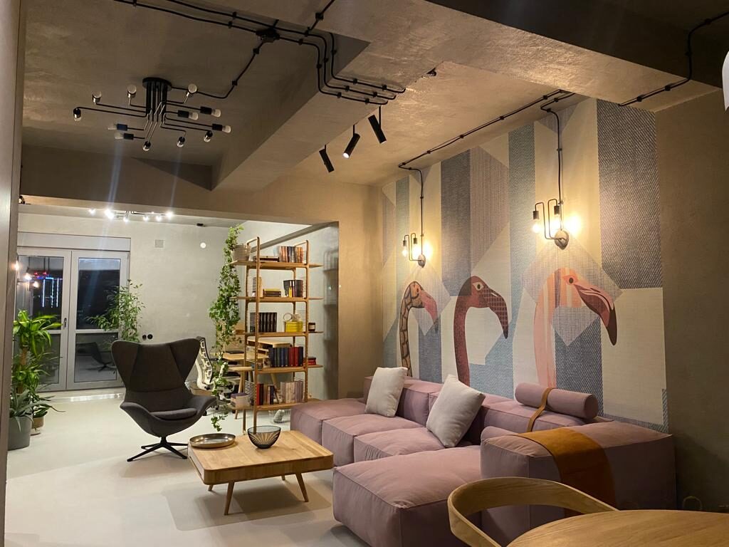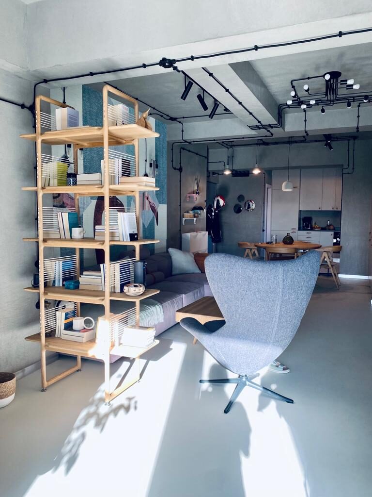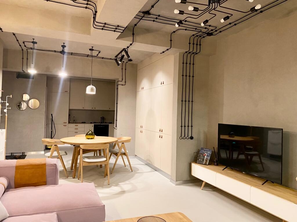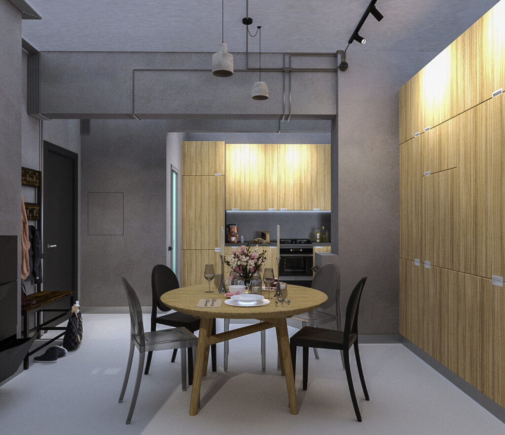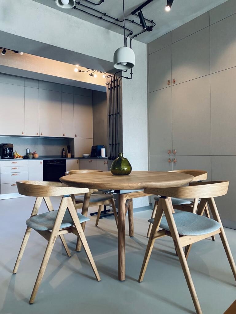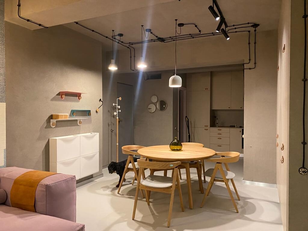 Apartamentul situat la ultimul nivel pe Calea Victoriei intr-un imobil interbelic, amenajat dupa un concept creat pentru un cuplu tanar de arhitecti. Conceptul este unul industrial-minimalist, cu detalii ce subliniaza aceasta atmosfera atat in ce priveste mobilierul, cat si finisajele si iluminatul. Piesele de mobilier sunt moderne, cu forme organice din lemn masiv juxtapuse cu piese iconice de design. Gama cromatica propune griuri colorate cu accente de culoare pastelata.
